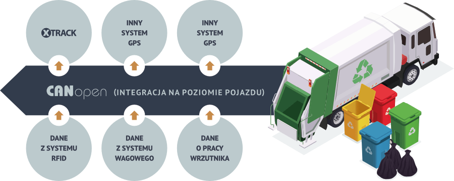 Wyobraź sobie przykładową sytuację. Zamawiasz nowe śmieciarki i aby zoptymalizować proces zakupowy oraz wartość inwestycji prosisz dostawcę pojazdów, by fabrycznie wyposażył je w system identyfikacji RFID pojemników zgodny z normą EN 14803 i/lub system ważenia odpadów odbieranych od mieszkańców. Jednak nie wybrałeś jeszcze dostawcy „systemu GPS i oprogramowania” dla twojej firmy (lub rozważasz potencjalną migrację do innego dostawcy)