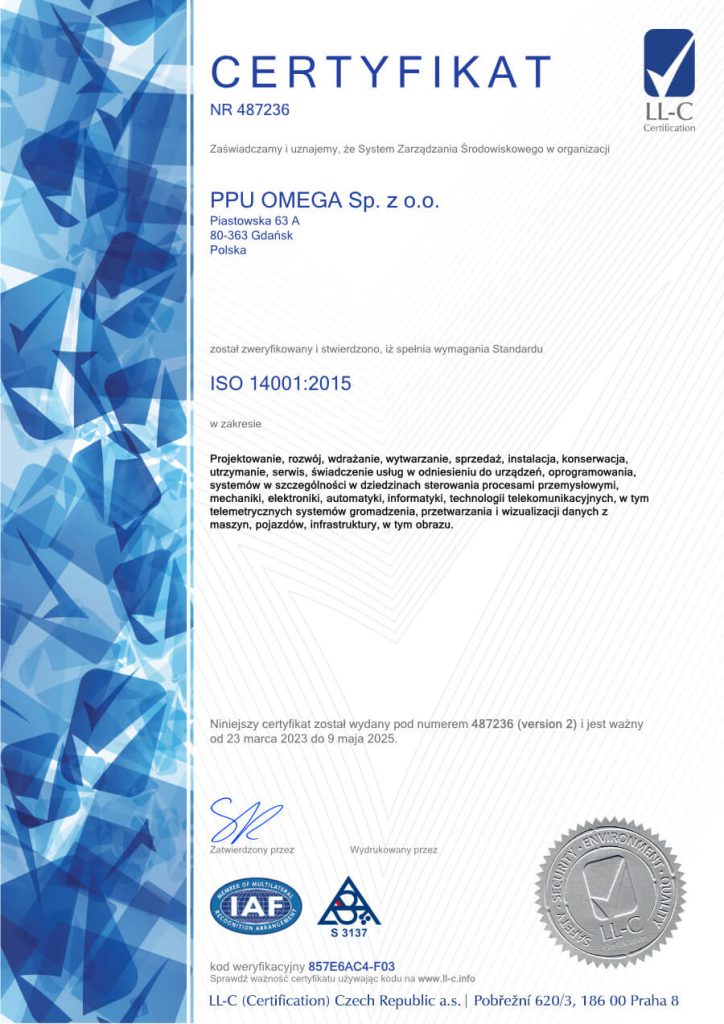 - ISO 14001: 2015 – to wiodący standard dotyczący systemów zarządzania środowiskowego. Funkcjonuje w oparciu o międzynarodowe standardy i stanowi potwierdzenie konsekwentnego wdrażania wszystkich elementów zmierzających do maksymalnego ograniczenia negatywnego wpływu organizacji na środowisko.