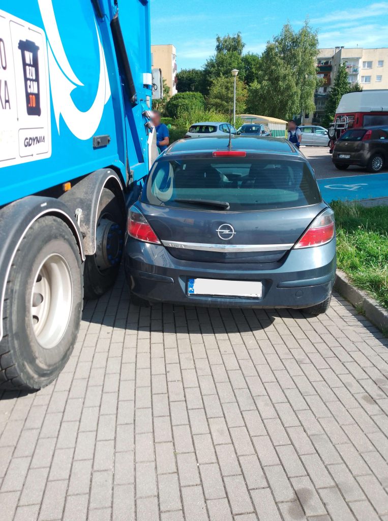 Przykład udokumentowanego braku dojazdu dla pojazdu bezpylnego z powodu nieprawidołwo zaparkowanego pojazdu.